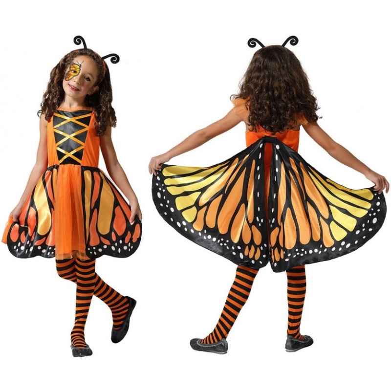 Ce Déguisement de Papillon pour Fille la transformera en un magnifique insecte le temps de sa fête déguisée. La tenue comprend une Robe orange, des Ailes en tissu orange et noir et un serre tête avec deux antennes noires.