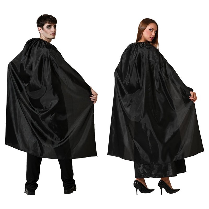 Cette Cape en polyester noire mesurant 130cm de haut complètera tout déguisement pour Halloween, tel le Vampire