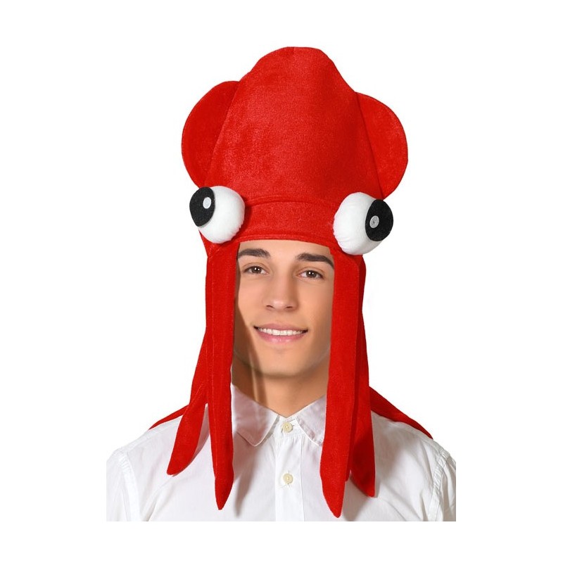 Chapeau Animal Calmar Rouge, un Accessoire de Déguisement Adulte Homme/Femme d'Animal Marin