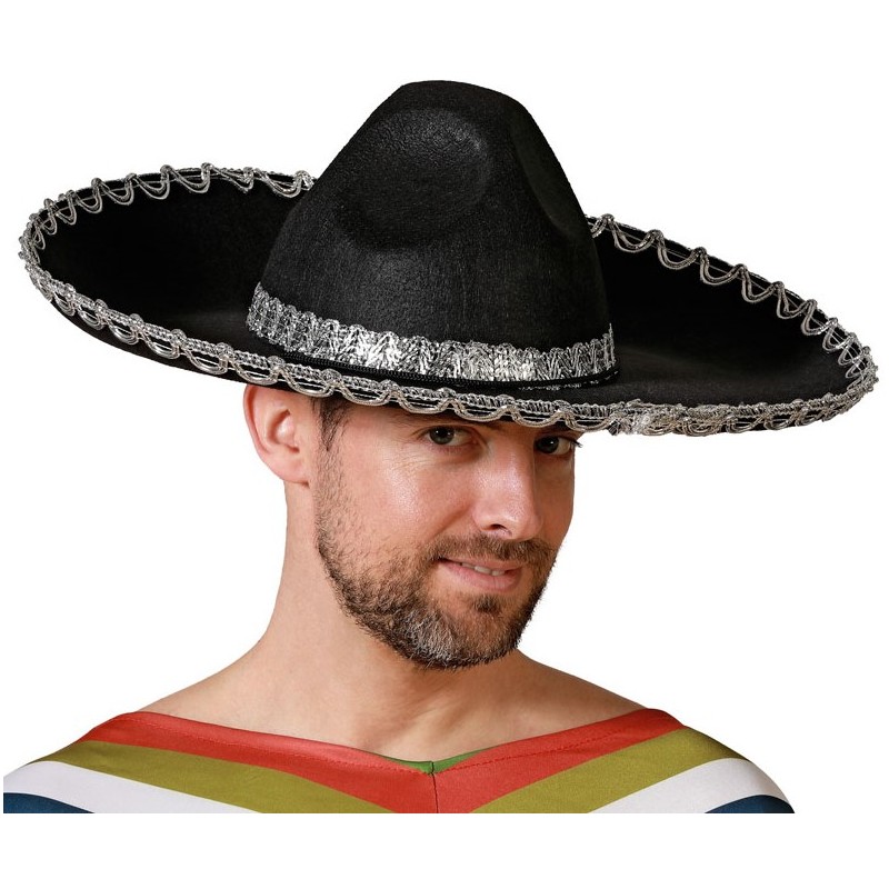 Petit Sombrero Noir/Argent de 45cm, un Accessoire de Déguisement pour Adulte de Mexicain