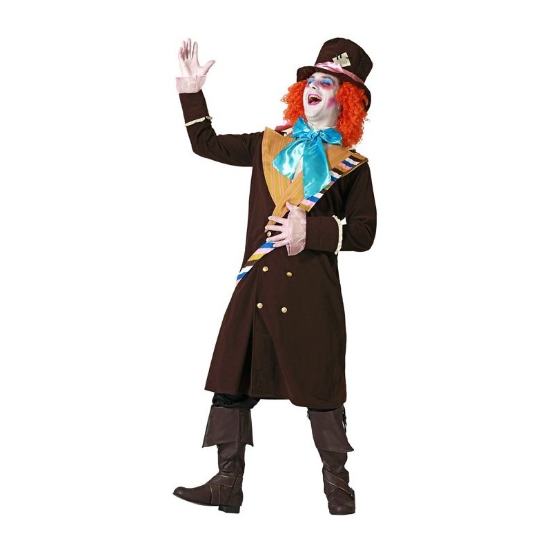 Manteau long marron, Col avec Noeud Papillon et Chapeau de Chapelier Fou, un Déguisement pour Homme de Dessin Animé Alice
