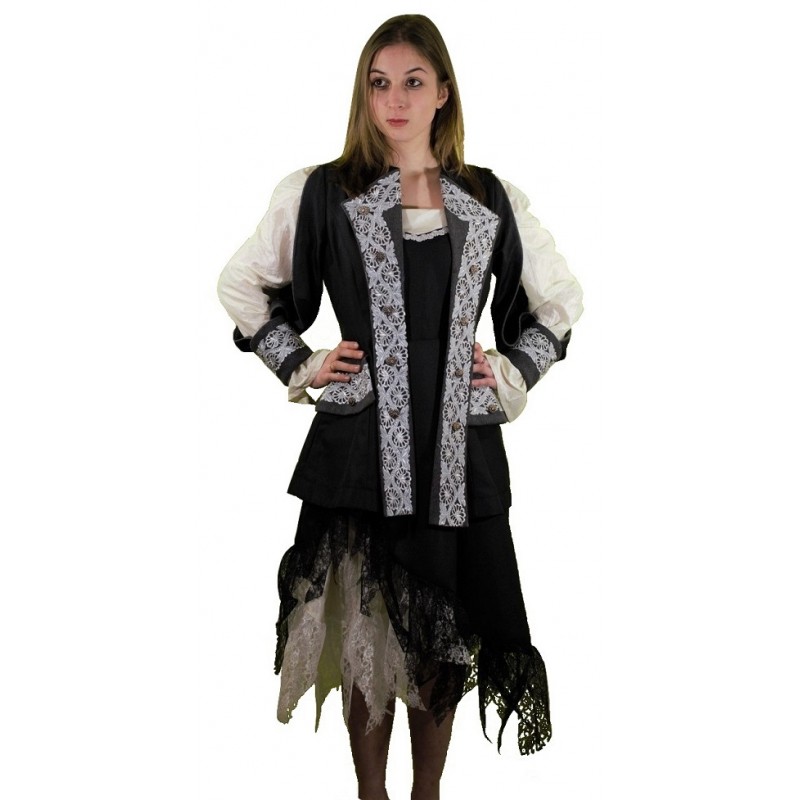 Robe et Veste de Pirate Noir, un Costume de théâtre pour Femme Elégante Pirate