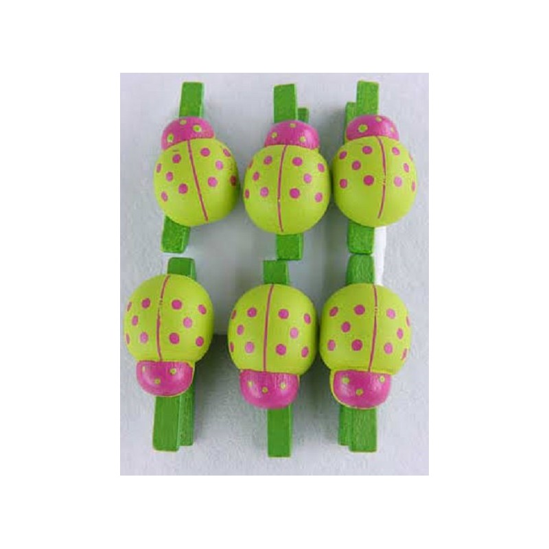 6 Pinces à Linge COCCINELLE verts Anis, une décoration de table pour votre Mariage, Baptême ou Fête