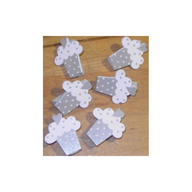 6 Pinces à Linge Gâteau Cupcake Gris et Blanc, une décoration de table pour votre Mariage, Baptême ou Fête