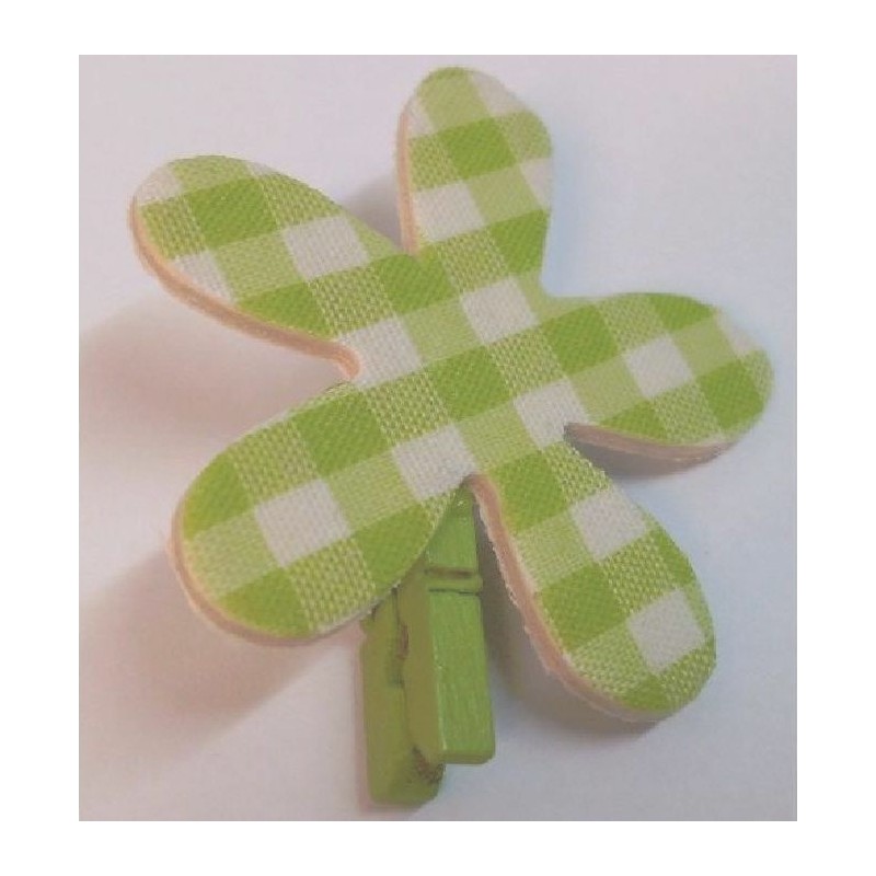 6 mini Pinces à Linge FLEUR Vichy Vert