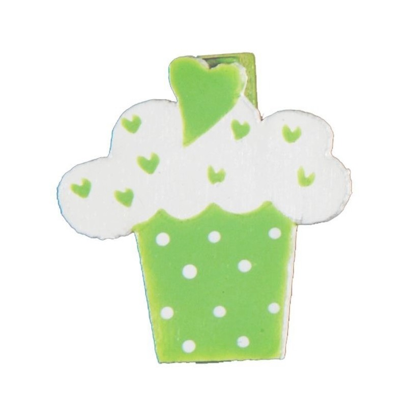 6 Pinces à Linge Gâteau Cupcake Vert Anis et Blanc, une décoration de table pour votre Mariage, Baptême ou Fête