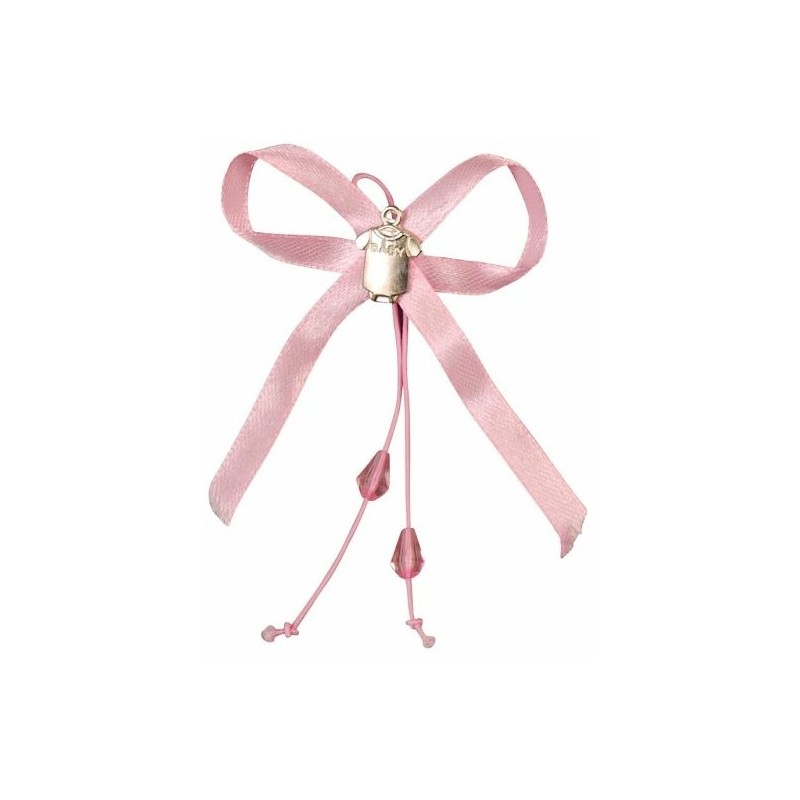 5 Noeuds en satin Rose avec Médaillon Body Argent, une décoration de table de Baptême