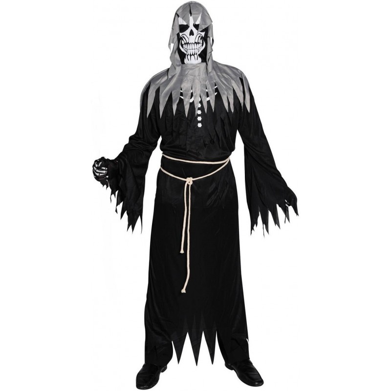 Robe, Masque cagoule, Gants et Ceinture de Squelette de la Mort, un Déguisement pour Homme d'Horreur pour Halloween