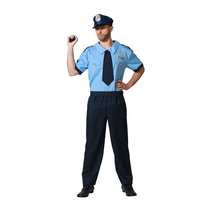 Voici un déguisement de Policier Français très réaliste. Ce costume comprend la chemise bleu clair, le pantalon bleu foncé, une ceinture et une casquette. Cet uniforme est idéal pour une fête déguisée sur le thème des métiers, de l'uniforme ou pour un Carnaval.