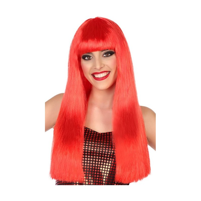 Cette Perruque aux cheveux longs avec frange de couleur Rouge, vous permettra de compléter votre déguisement de Star de Cinéma, de Disco. Elle sera le complément idéal pour parfaire votre Déguisement lors d'une Fête, d'un Spectacle ou un Carnaval,