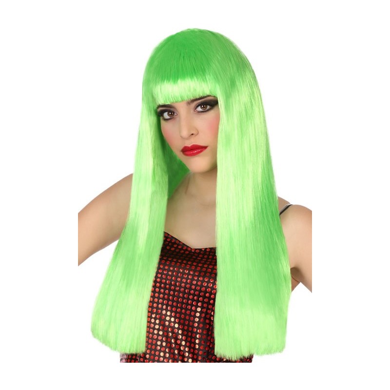 Perruque Longue Vert fluo avec Frange, un Accessoire de Déguisement pour Femme