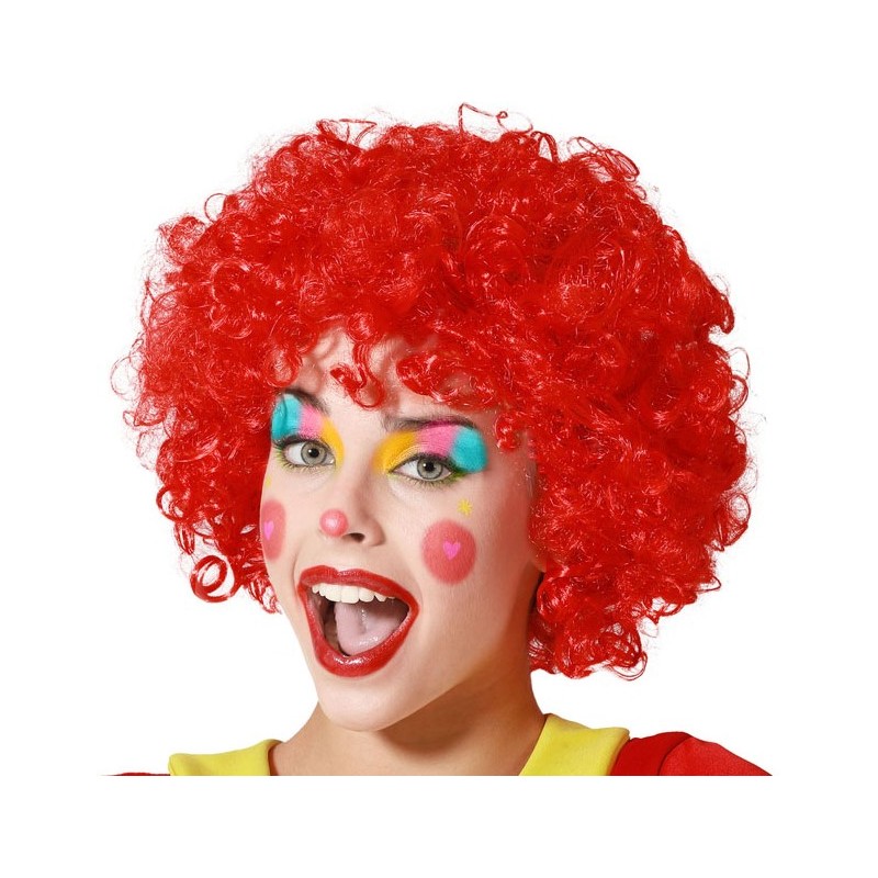 Cette Perruque de couleur Rouge avec des boucles frisés, conviendra parfaitement pour un Déguisement de Clown