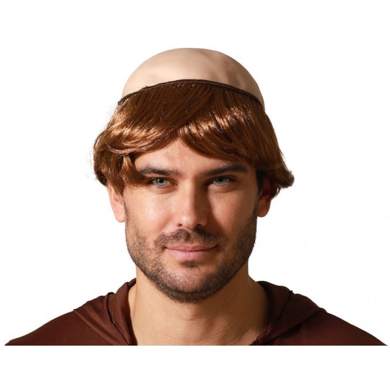 Cette Perruque avec des cheveux courts chatains et un crane chauve au dessus, vous permettra de vous transformer en moine, religieux lors de votre prochaine fête déguisée !